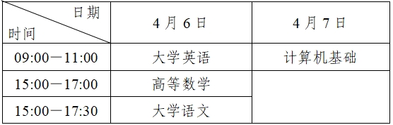 我省2024年专升本考试于4月6日、7日统一组织进行。各科目考试时间(北京时间)安排如下: